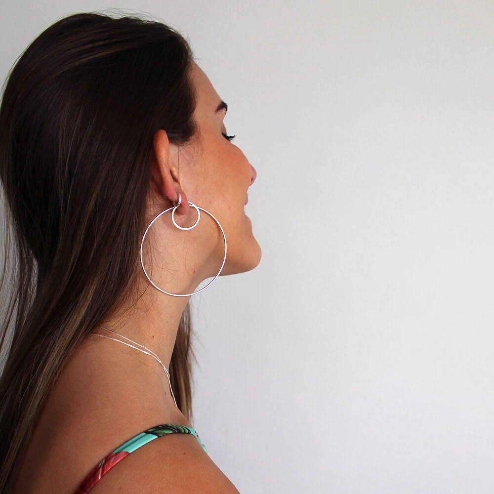 A Argola Malei P Prata é bem delicada e perfeita para o dia a dia. Não machuca e prende firme na orelha. Fica linda em um mix de argolinhas!
